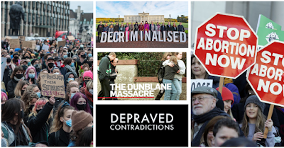 The most cruel contradiction of all, however, is the murderous act of abortion itself. Already more than 1,000 little babies have been slaughtered in Northern Ireland since the introduction of abortion less than one year ago. People weep because of the deaths of sixteen primary one children in Dunblane twenty five years ago, plus their teacher who died trying to protect her “wee” class, but are completely without emotion when the law murders children who have a right to life, in the very place God designed for their nurture and safety. Abortion in the western world, has strange depraved echoes of the Nazi death camps and gas chambers and it fills me with horror. If there is one sin that will bring God’s wrath upon this United Kingdom, it is the slaughter of the innocent, approved by Parliament, consented to by our Queen and funded by our NHS.