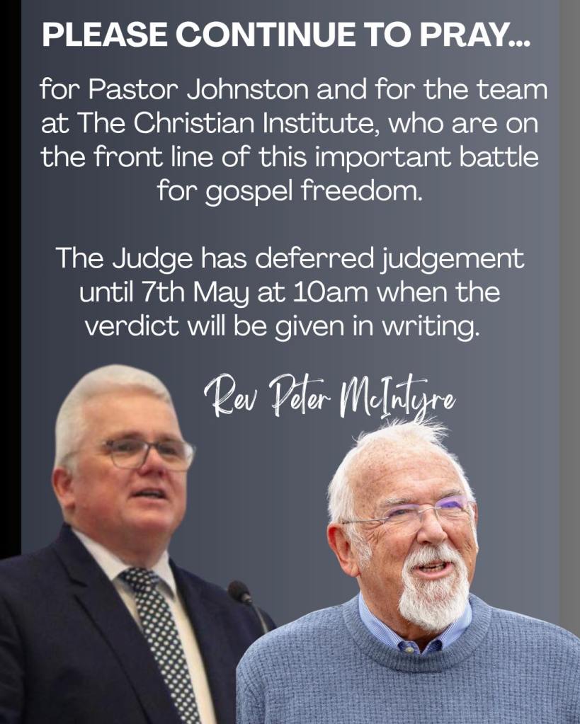 Please pray for Pastor Johnston and for the team at The Christian Institute, who are on the front line of this important battle for gospel freedom. ![]()